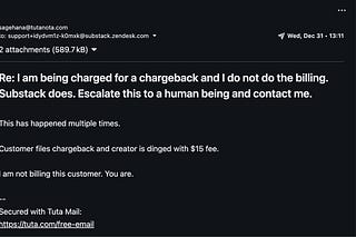 👇 This will go back and forth with Cantrell, the Substack Bot Hoooman, blathering and deflecting that Substack bills the customer and takes a cut but…