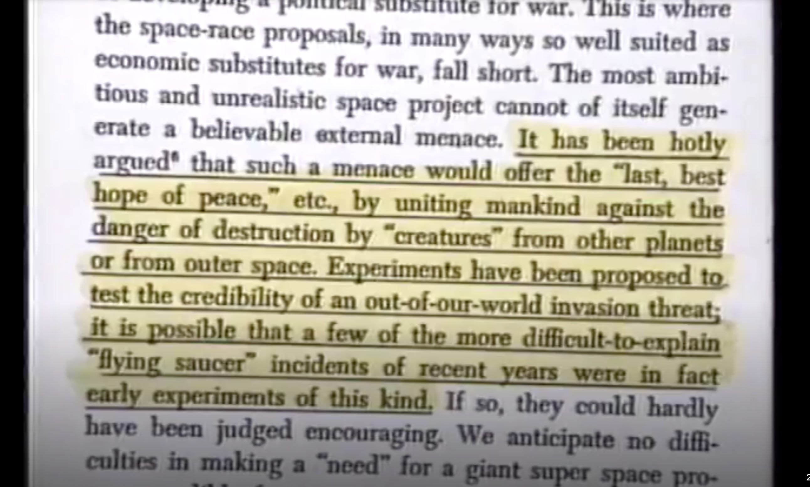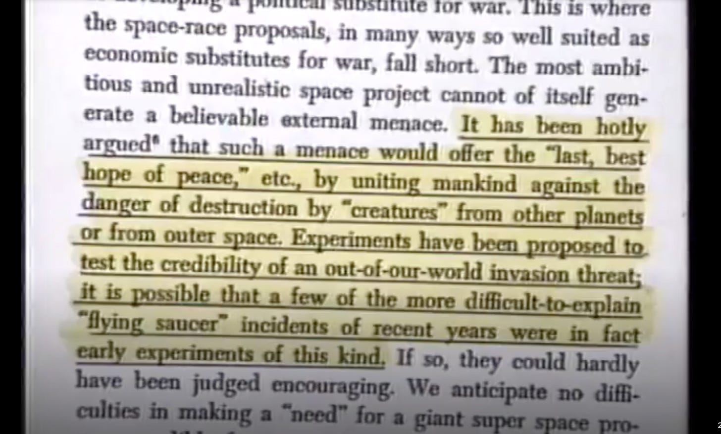 The Demon Alien talking point is straight out of the Report from Iron Mountain which probably comes from the Hudson Institute whose Jewish founder was a key advisor to Klaus Schwab.