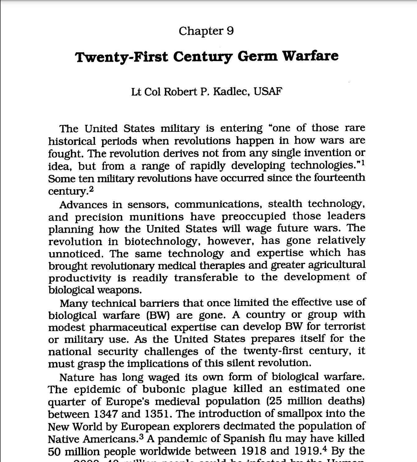 Many technical barriers that once limited the effective use of biological warfare (BW) are gone. A country or group with modest pharmaceutical expertise can develop BW for terrorist or military use . As the United States prepares itself for the national security challenges of the twenty-first century, it must grasp the implicati…