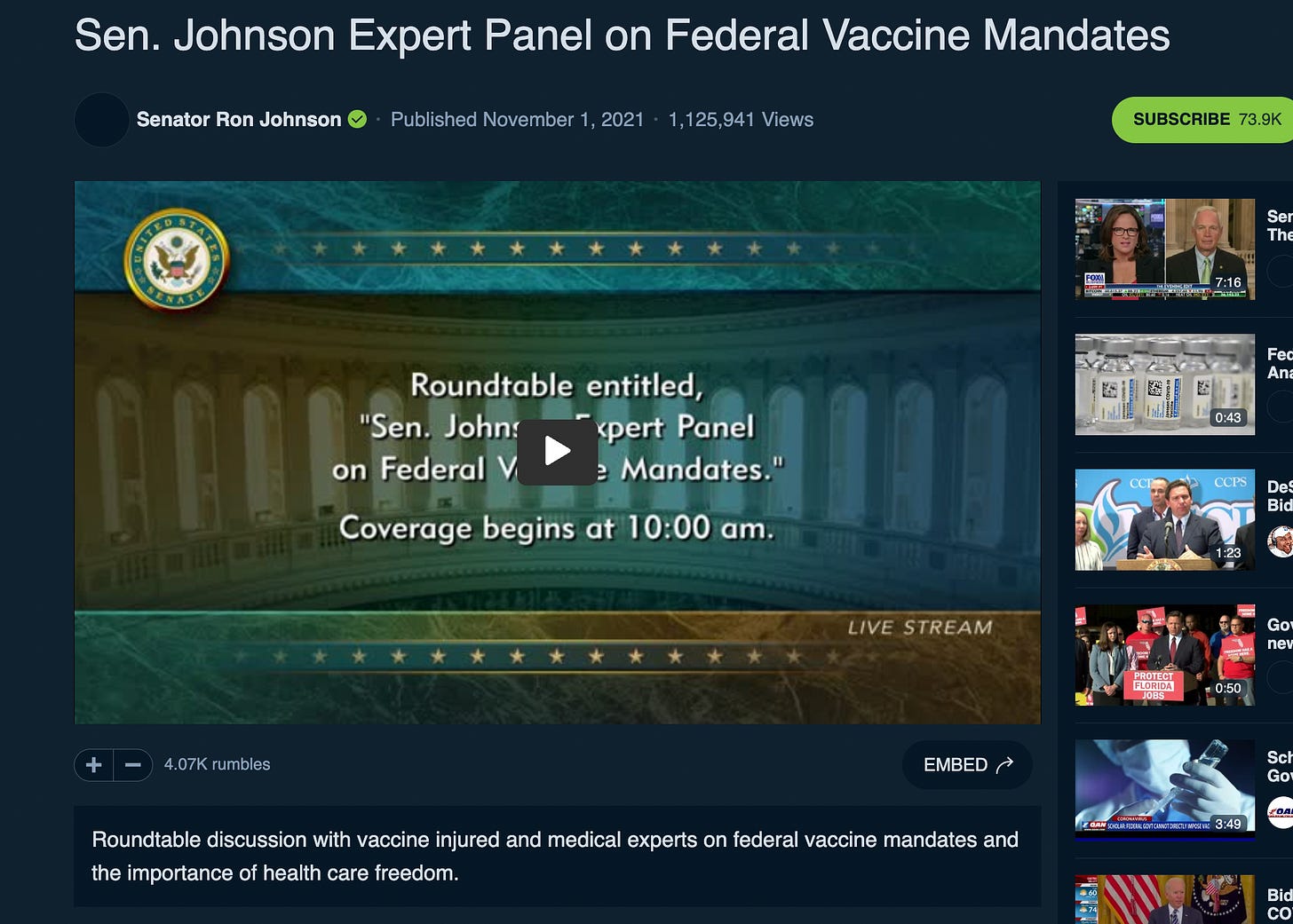 Senator Ron Johnson held three hearings on the VaccinesOct 03, 2023∙ Paid13511913ShareIn November, 2021, Ron Johnson held a hearing on Federal Vaccine Mandates.That was before I was even on Substack.A few months later, Senator Ron Johnson held this hearing:This post is for paid subscribersSubscribeAlready a paid subscriber? Sign in