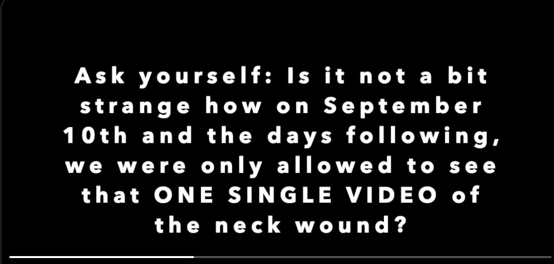 Okay, so if you follow this logical narrative, then probably the battery pack exploded in a hit ala Lebanon and then an AI mop up video was constructed to magically show a hole in the left neck and chunky giblet like blood comes out.