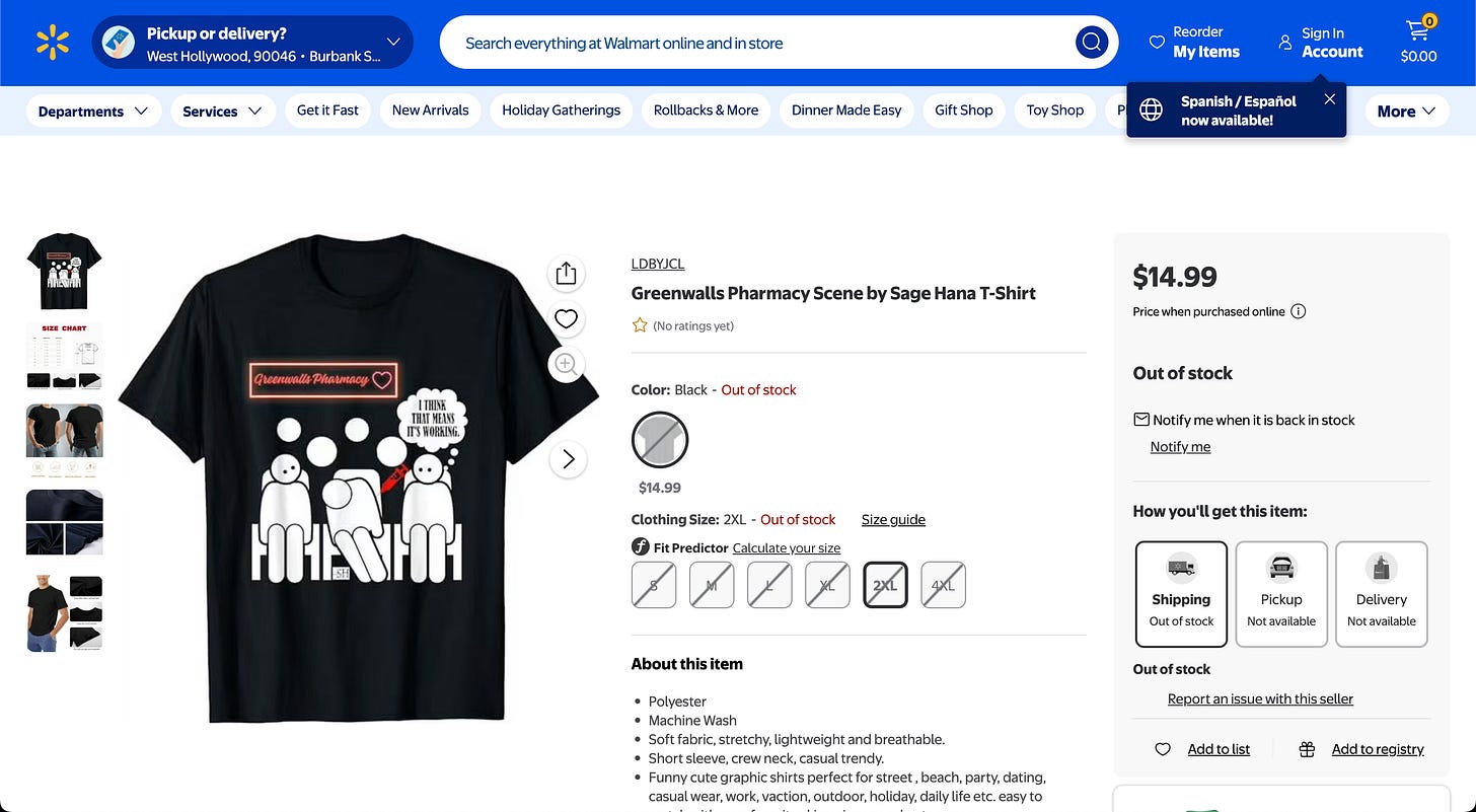 Also I found out that Walmart is selling knock offs of our merch line which got pummeled with knock off purveyors from the jump and since we were not selling all that much, we shuttered it.
