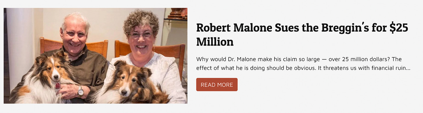 Today in Not a Movement: Dr. Robert Malone Sues the Breggins for $25-MillionOn the heels of blasting Died Suddenly, Sherpa's lawsuit against Peter and Ginger Breggin comes to light. Dr. Jane Ruby is also named as a defendant.Nov 28, 2022∙ Paid125253SharePromo Code: Kathleen JanoskiThis post is for paid subscribersSubscribeAlready a paid subscriber? Sign in