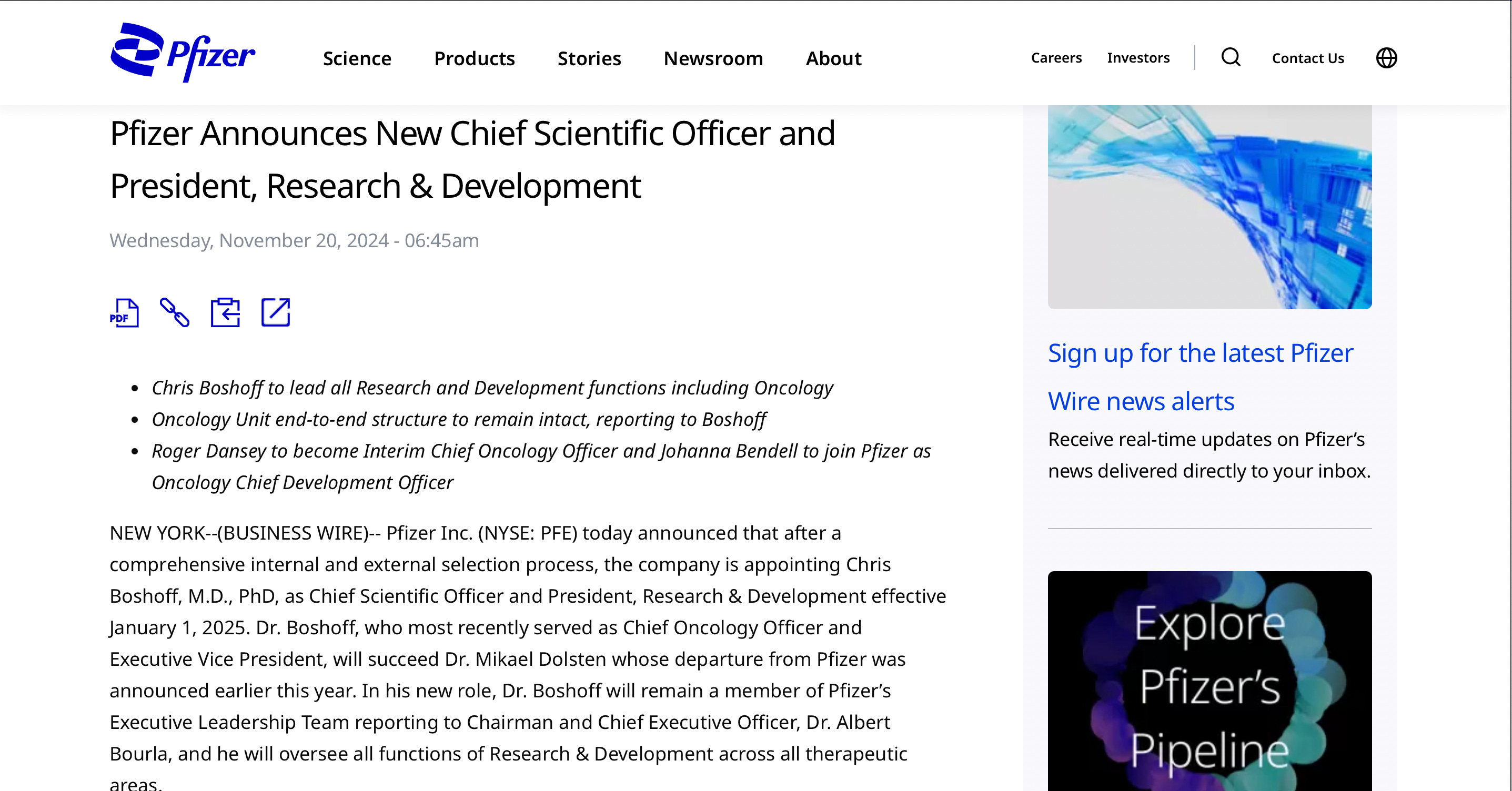 Chris Boshoff to lead all Research and Development functions including Oncology Oncology Unit end-to-end structure to remain intact, reporting to Boshoff Roger Dansey to become Interim Chief Oncology